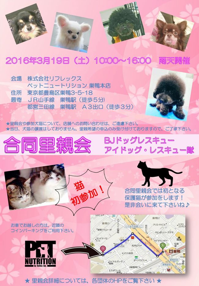 (今回はBJドッグレスキューとの合同里親会になります)